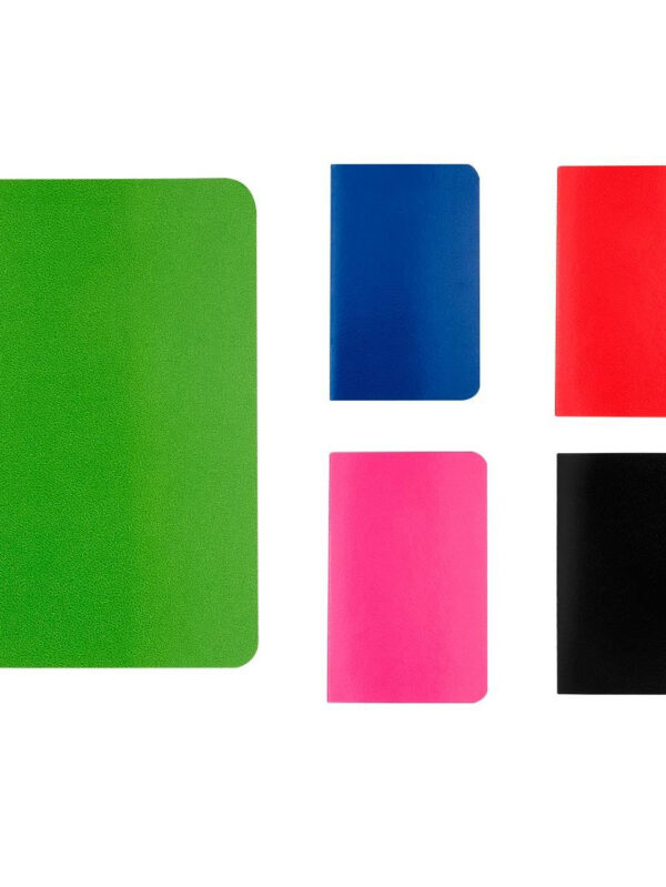 Libreta con 80 hojas de raya. Incluye separador de hojas y elástico para cerrar.