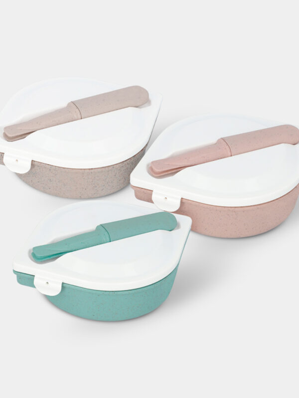 Divertido contenedor para almacenar alimentos. Cuenta con pestañas de cierre a presión para asegurar su contenido. Esta lonchera posee dos áreas distintas: Una dedicada a colocar los alimentos y otra, destinada a un cilindro de plástico ya incluido. Por su parte, el cilindro cuenta con sistema de rosca twist-off, que permite abrir y cerrar la tapa en un giro. Además, este cilindro dispone también de una válvula de seguridad para evitar derrames. No apto para bebidas calientes. No introducir en microondas.